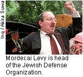 we approve of breaking up their meetings etc. We are followers of Zev Jabotinsky, a Zionist leader who warned the Jews of Europe about the mortal dangers of Nazism. We are a counter-terrorist organization and do not approve of terrrorism against elected officials or Houses of Worship - as Irv Rubin of the JEWISH DEFENSE LEAGUE - JDL - has been accused of. We do not know if Rubin is innocent or guilty - he is innocent until proven guilty!!! We have stated for many years that Irv Rubin is a stupid inarticulate thug and a traitor to the Jewish people. We do believe that Jews have the right to defend themselves against Nazi terrorism by any means necessary. We accept Jews and non-Jews into our ranks. We have peaceful, though militant demonstrations and run CAMP JABOTINSKY, to legally train Jews and others in the art of self-defense. We do not operate in Israel, however, we oppose the so-called Oslo Accords because it is not working and could never work. Arafat does not want peace - he wants to destroy Israel. We don't believe in threatening or attacking the Peace Now people, because they are fellow Jews, but they are wrong and must be repudiated and told that they are wrong. If they can't see this now, they are hiding their heads in the Negev Sands. We are motivated more by our love of the Jewish people than by hatred of their enemies. Our membership includes secular and religious Jews - however all are activities include prayer, love of our Torah, the G-D given law, and we adhere to glatt kosher standards when it comes to chow!!! NOTE: Recently several people were arrested in the West Coast accused of